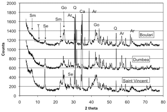 All of the detrital minerals detected were previously described [50] from the weathering profiles of the plateaus. The predominance of clay minerals in St Vincent Bay and Boulari Bay may be attributed to the presence of, respectively, actual and former open cast mines in their watershed which erode the deeper lateritic horizons where clay minerals are for the most part located.