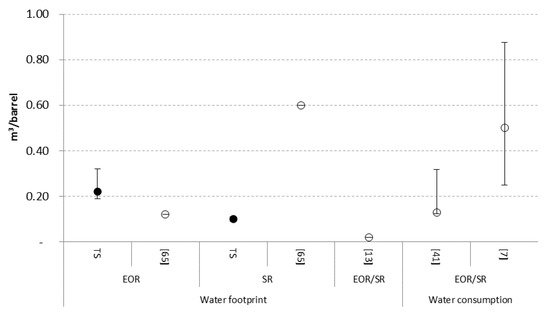- Carmona, L.G. Water Footprint for Heavy Oil Extraction in Colombia: Relationship between Oil and Water. In Proceedings of the SPE E&P Health, Safety, Security and Environmental Conference-Americas, Denver, CO, USA, 16–18 March 2015; Society of Petroleum Engineers: Richardson, TX, USA, 2015. [Google Scholar]