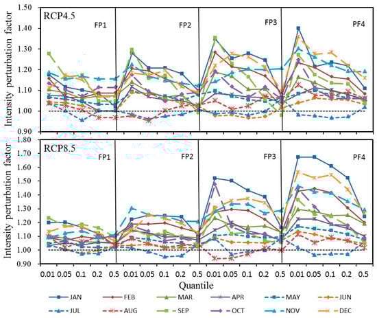 - Obtain the future precipitation intensity at each quantile i (), formulated as ;
