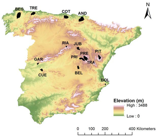 As shown in Table 1, the R-B Index in the basins selected range from 0.08 to 0.47, covering the diversity of flashiness conditions found in Peninsular Spain. Higher values for this index indicate higher flashiness (flashy streams), whereas lower values indicate stable streams. Climates, topography, geology, percentages of forest cover, catchment area and shape, land use and other catchment attributes influence the streamflow regime and, hence, the flashiness index [34]. Depending on the case study, different correlations between flashiness index and catchment attributes can be found. We have found a negative correlation with the mean catchment elevation, and this is similar to results obtained by Holko et al. (2011) [35]. The daily flow data and streamflow gauging stations were collected from the CEDEX [36].