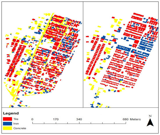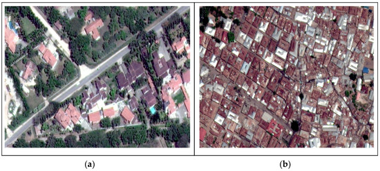 For manual digitization, only planned areas within the study area were targeted (referred to subsequently as the “control area”) due to the ease of roof type identification for digitization. The other reason was that unplanned congested areas might not be suitable for RRWH since they lack the required space. Furthermore, the inhabitants may not be able to afford the system. Figure 4 shows the difference between planned and unplanned areas within the city.