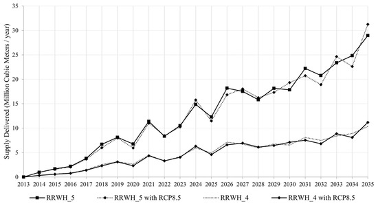 Total supply delivered under different management scenarios (2013–2035).