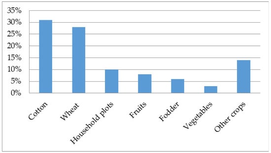At the beginning of the 2000s, the authorities in Uzbekistan decided that agricultural productivity should be increased by land reform. This meant that the state ownership of the land was retained, but lifelong land use rights were introduced [33]. For this purpose, presumptive farmers applied for land use rights in a tendering process. A committee reviewed the applications and awarded land parcels based on the applicants’ farming qualifications and fulfillment of certain other requirements (such as owning agricultural machinery and having a university degree). Priority was given to those who had been members of a kolkhoz, sovkhoz, or shirkat [3]. Market liberalization, however, also resulted in an increase in water use [34].