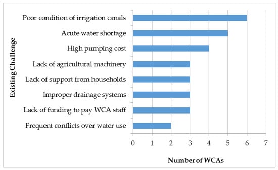 This study found that most WCAs lack the proper institutional background for effective farm management and good governance. Despite having a good education, WCA officials have a limited authority and knowledge with respect to water distribution. Meetings with WCA members are held only a few times a year. This is also because farmers are occupied with crop production throughout the year. WCAs are incapable of collecting ISFs. Most study participants proposed supporting WCAs by purchasing agricultural machinery (such as excavators and cranes), but were not willing to invest in spare parts and maintenance. It is important to keep investing in capacity-building activities and pushing for a comprehensive legal and regulatory framework for WCAs.