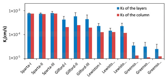 3.1. Saturated Hydraulic Conductivities of the Columns