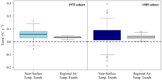 2.7. Comparison with Air and Lake Near-Surface Temperature Trends