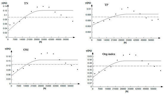 Geo-statistics was applied to describe the spatial variation of nutrients contents and the organic pollution evaluation index in this study. It uses the technique of variogram (or semi-variogram) to measure the spatial variability of major nutrients, and provides input parameters for the spatial interpolation of kriging [18,19]. The semi-variogram can be expressed as: