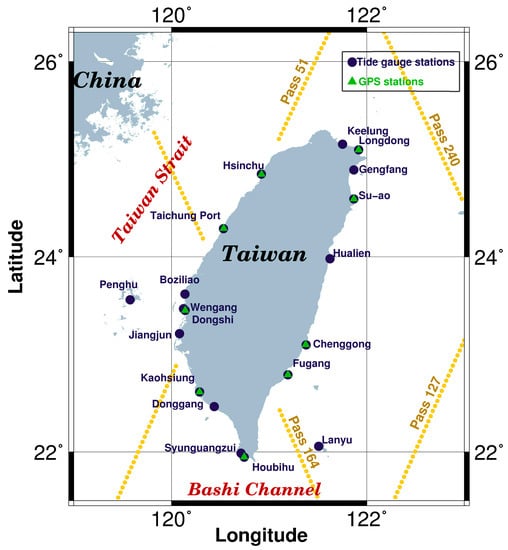 This research was supported by grants from the Ministry of Science and Technology of Taiwan (MOST 103-2221-E-006-115-MY3; MOST 104-2221-E-006-048-MY3) and Harbor and Marine Technology Center (MOTC-IOT-102-H3DB004a; MOTC-IOT-103-H3DB003a; MOTC-IOT-104-H3DB003a; MOTC-IOT-105-H3DB003a). The satellite altimeter data were provided by Archiving, Validation, and Interpretation of Satellite Oceanographic center. The tide gauge data were provided by the Central Weather Bureau of Taiwan, the Water Resources Agency of Taiwan, and the Harbor and Marine Technology Center of Taiwan. We also acknowledge the assistance of Kuo-En Ching with the GPS data processing.