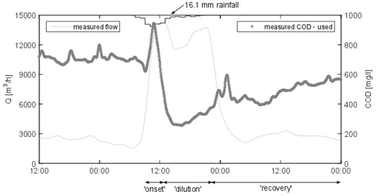 Recent applications of water quality sensors have resulted in the availability of long time series of WWTP influent quantity and quality [22,23]. These time series contain a lot of information on the response of influent quality to storm events and the contribution of in-sewer stocks to WWTP influent [24].