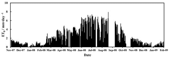 Daily reference evapotranspiration (ET0) at the Yingke site from November 2007 to January 2009.