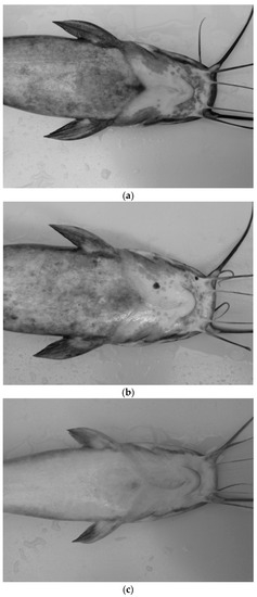 Photos of the ventral side were taken of each sampled fish to distinguish individuals by their distinct skin patterns (Figure 4). This was done in order to avoid repetitive sampling of the same specimens (pseudo-replication) on ensuing sampling days. This noninvasive method guaranteed the meaning of cortisol baseline sampling and can be recommended for C. gariepinus.
