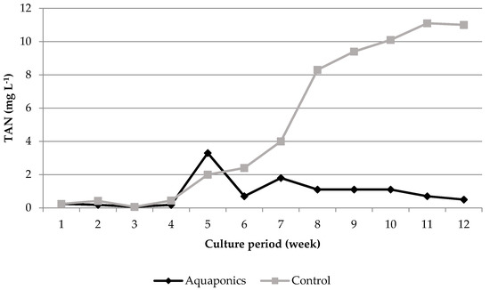 Nitrate-N, nitrite-N and TAN were reduced to a greater extent under the aquaponic conditions (Table 1, Figure 5, Figure 6 and Figure 7).