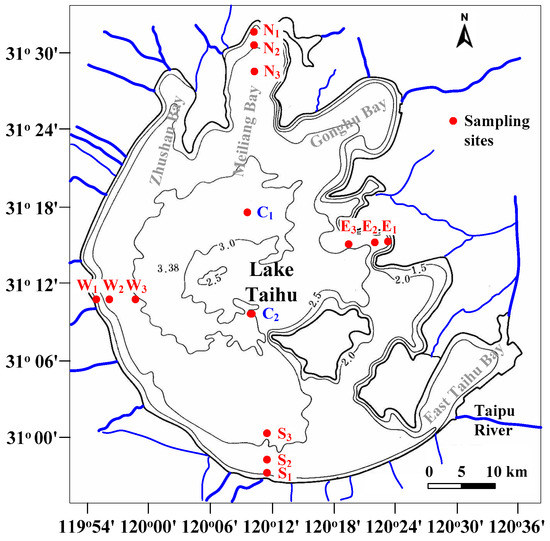 - Qin, B.; Xu, P.; Wu, Q.; Luo, L.; Zhang, Y. Environmental issues of Lake Taihu, China. Hydrobiologia 2007, 581, 3–14. [Google Scholar] [CrossRef]