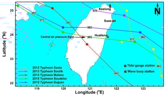 - Chen, W.B.; Liu, W.C.; Hsu, M.H. Computational investigation of typhoon-induced storm surges along the Coast of Taiwan. Nat. Hazards 2012, 64, 1161–1185. [Google Scholar] [CrossRef]