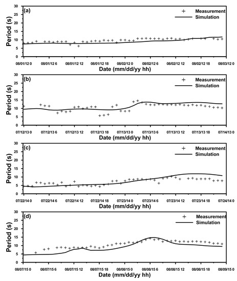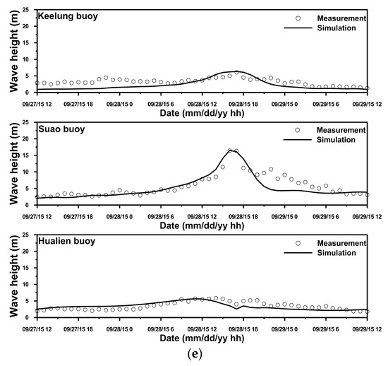 - Yoon, J.-J.; Jun, K.-C. Coupled storm surge and wave simulations for the southern coast of Korea. Ocean Sci. J. 2015, 50, 9–28. [Google Scholar] [CrossRef]