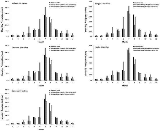 3.1. Downscaled Climate Data under RCP 4.5 Scenario Using the Monthly Bias Correction