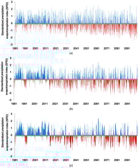 | SPEI | 1995 (1981–2010) | 15.7 | 15.7 | 18.4 | 13 | 13 | 15 | 1.21 | 1.20 | 1.24 |