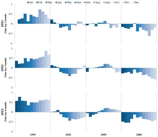 3.2. Estimation of Multiple Timescale SPI and SPEI for 1981–2100