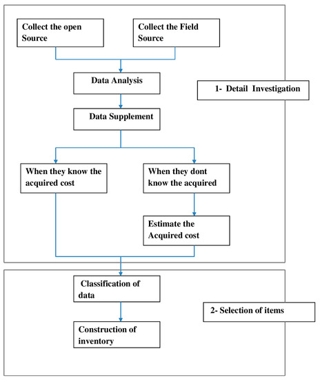 The next step is to select items, classify them by level, and establish the inventory of assets by level. The classified inventory is later used for LCC analysis. The flow chart for establishing an asset inventory is shown in Figure 1.