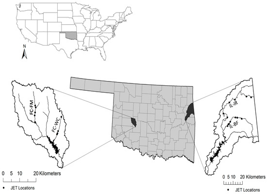 - Daly, E. Evaluation of the Conservational Channel Evolution and Pollutant Transport System (Concepts) Applied to Composite Streambanks in the Ozark Highlands Ecoregion. Master’s Thesis, Oklahoma State University, Stillwater, OK, USA, 2012. [Google Scholar]
