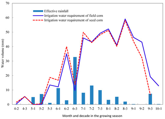 Irrigation water requirements of seed corn and field corn. Note: The meanings of figures in the horizontal axis are similar to those in Figure 3.