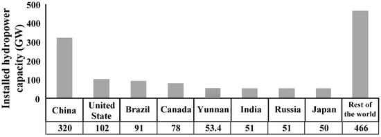 Installed hydropower capacity of the top seven hydropower producing countries and of Yunnan Province.