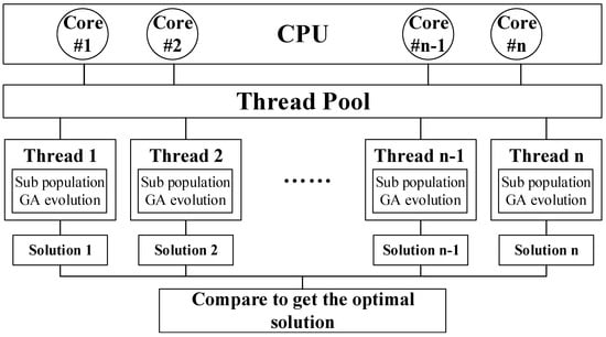 Step Four: initialize each sub-population randomly, and assign them to different threads for GA execution.