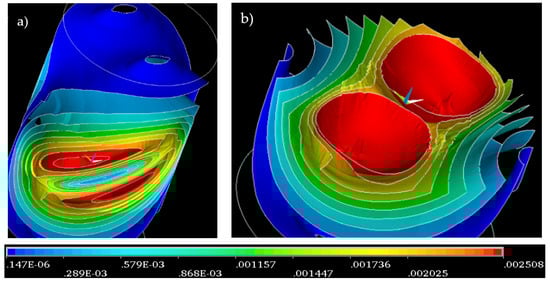 The magnetic field B [T] in the spiral arrangement of the permanent magnets. (a) In the vicinity of the cylinder surface; (b) in the remote region with respect to the magnets.