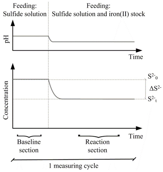 Schematic drawing of one measurement cycle of sulfide precipitation using ferrous iron.