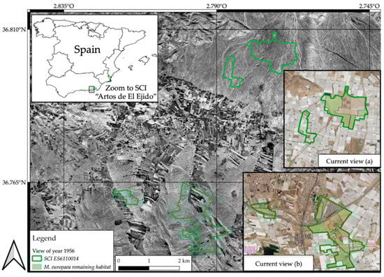 We can conclude that although the Campo de Dalías area has suffered the greatest habitat loss in terms of the extent of occurrence and occupancy area, this is a key territory for the future of the species, as demonstrated by the distribution models generated throughout this research. Therefore, safeguarding the last remaining redoubts of the Spanish M. europaea communities in this zone is considered absolutely essential.
