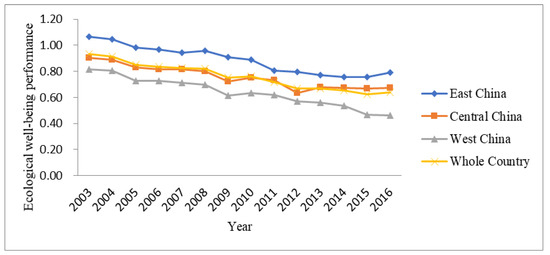 Evolutionary trend of ecological well-being performance in China from 2003–2016.