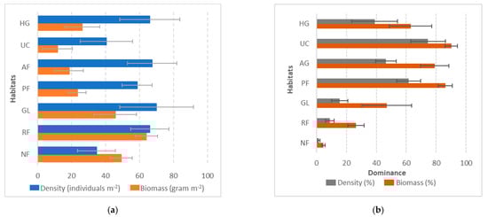 We used seven indicators to assess the dominance, density, and diversity of earthworm species. Following [], five indicators represent dominance and density, namely density and biomass per soil layer, quantity and biomass dominance, and occurrence frequency. Two indicators, the Shannon–Wiener index [] and similarity index [], measure the level of diversity of earthworm species within habitat and similarity in species composition among habitats, respectively. For the similarity index, we omitted the sub-species component in the calculation. The seven indicators are described in Table A3.