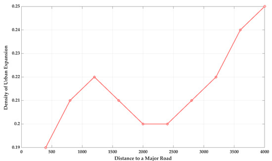 Correlation between Density of Urban Expansion and Distance to the Main Road