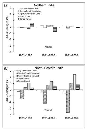 Chicago/Turabian StyleNayak, Sridhara, Suman Maity, Kuvar S. Singh, Hara Prasad Nayak, and Soma Dutta. 2021. "Influence of the Changes in Land-Use and Land Cover on Temperature over Northern and North-Eastern India" Land 10, no. 1: 52. https://doi.org/10.3390/land10010052