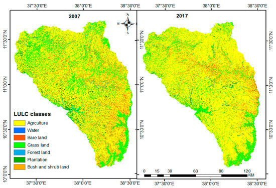 - Bewket, W.; Abebe, S. Land-use and land-cover change and its environmental implications in a tropical highland watershed, Ethiopia. Int. J. Environ. Stud. 2013, 70, 126–139. [Google Scholar] [CrossRef]