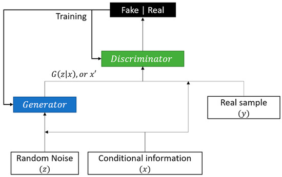- Mirza, M.; Osindero, S. Conditional Generative Adversarial Nets. arXiv 2014, arXiv:1411.1784. [Google Scholar]