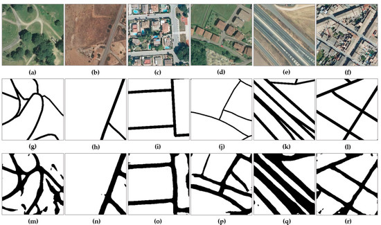 The proposed architecture delivered significant improvements and can be viewed as a postprocessing technique for semantic segmentation predictions of road surface areas. The metrical comparison presented in Table 1 and the perceptual validation carried out in Section 7 proved the efficacy of the network—we presume that the quality of these predictions can be further improved by using a bigger dataset. We also strongly believe that the proposed architecture can be used to enhance the extraction operation of other continuous geospatial objects such as rivers, railroads and other transportation networks, or irrigation canals. Furthermore, based on the results obtained in this work, we consider that the proposed procedure can be applied to other land analysis tasks or operations that involve the extraction of geospatial objects from remote sensing images.
