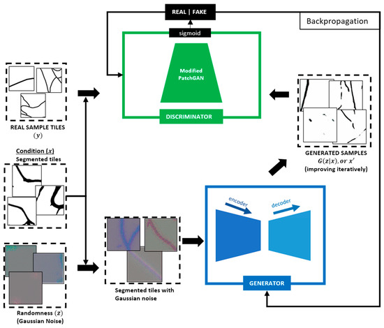 Representation describing the training process of the proposed cGAN architecture based on Pix2pix [15].