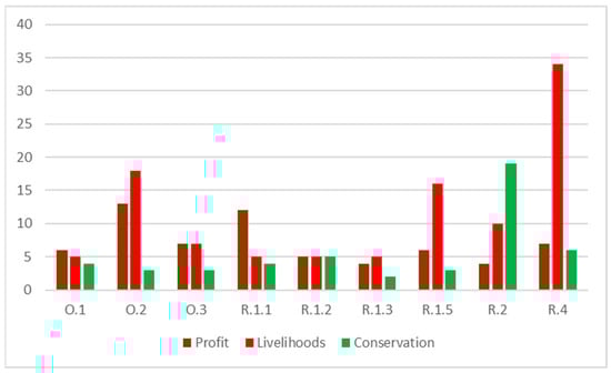 Interestingly, actors in both forest livelihood and profit maximization groups stated that better land tenure promotes better forest management (O.2) and access to more rights (O.3). However, these statements are based on different premises. The forest livelihood group’s discourse is based on the idea that land is central to material reproduction, as well as to belonging, subjectivity, and citizenship [,]. In contrast, actors in the profit maximization group view the formalization of property rights as an incentive for efficient land use and for investing in land conservation and improvement []; they refer to the theory of the tragedy of the commons [].