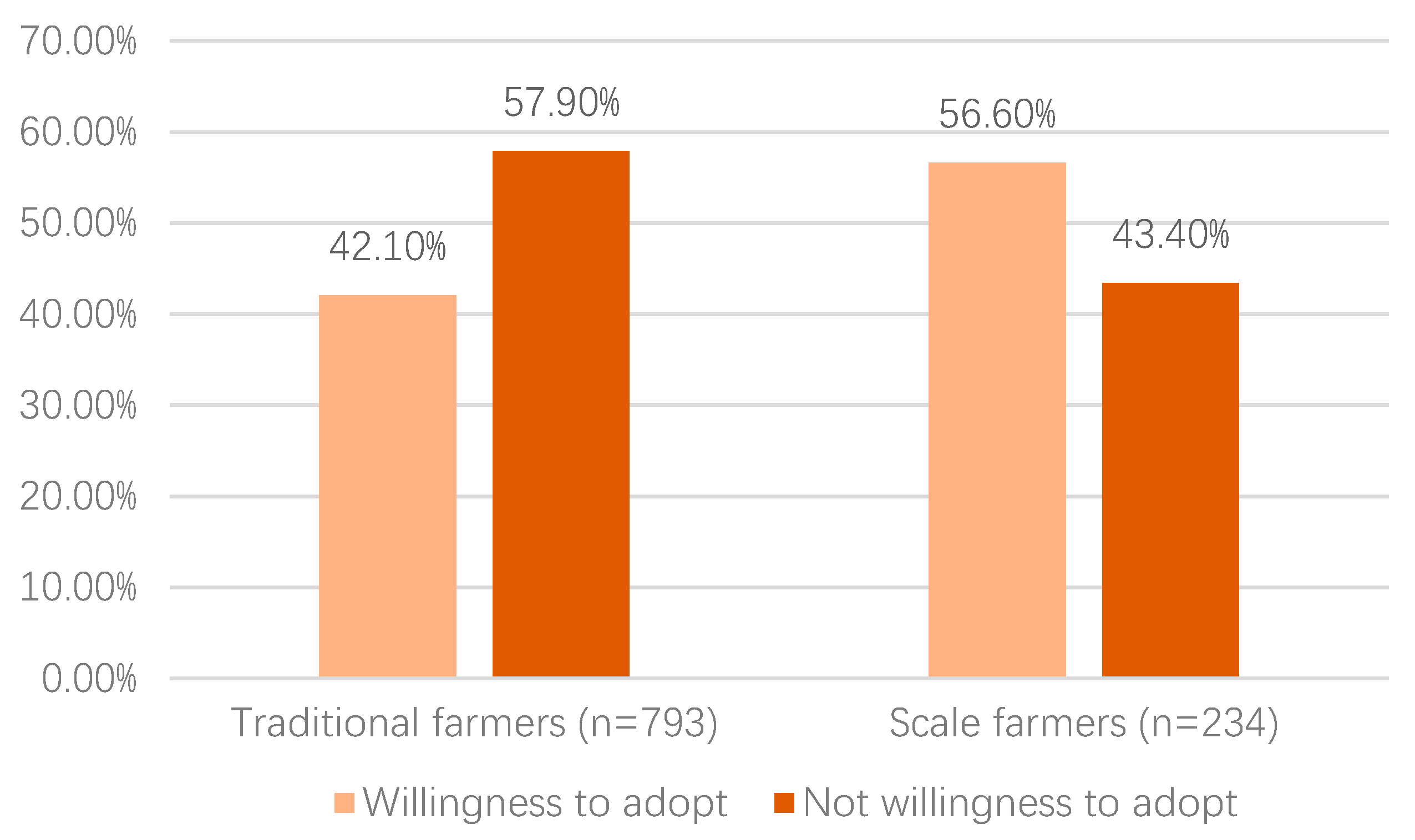 | Willingness to adopt | FWA: 1 = Yes; 0 = No | 0.533 | 0.493 | |