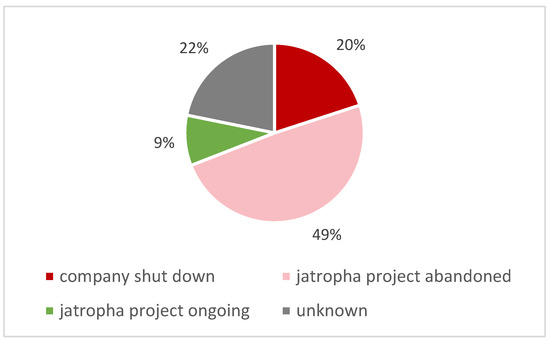Companies that had jatropha projects in India by status in 2020; source: author survey.