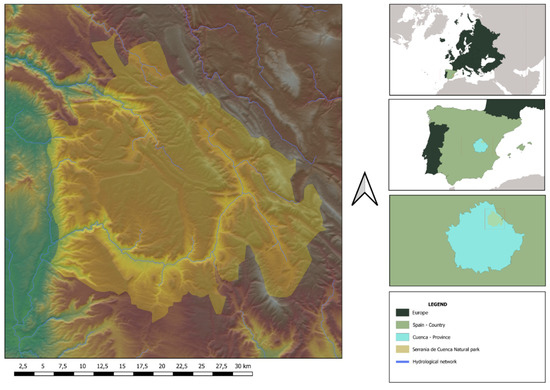 Geographic location of Serranía de Cuenca Natural Park. Source: National Center for Geographic Information (2020).