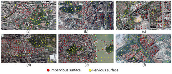 The high-resolution images incorporated in Google Earth Pro and the Landsat 5 TM images were used to assess the accuracies of the ISA maps. The “view historical imagery” tool in Google Earth Pro was used to find the best possible referenced image from 2000 to 2016. Before 2000, the verification samples were acquired by the Landsat 5 TM images. This study randomly selected 200 verification sample points per year in each city of the GHM Bay Area (Figure 3). Moreover, a confusion matrix method was used to verify the accuracy of the ISA extraction results.
