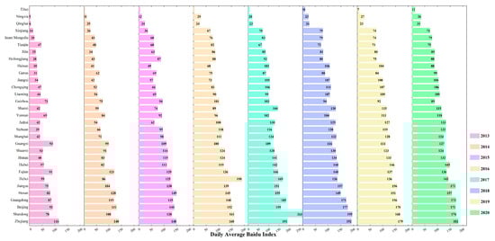 Figure 3. China’s provincial-level daily average Baidu index for “Beautiful Villages” during 2013–2020.