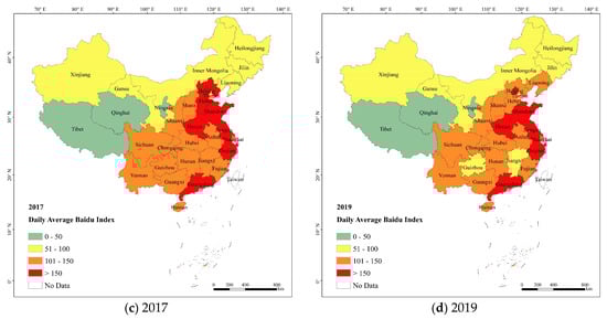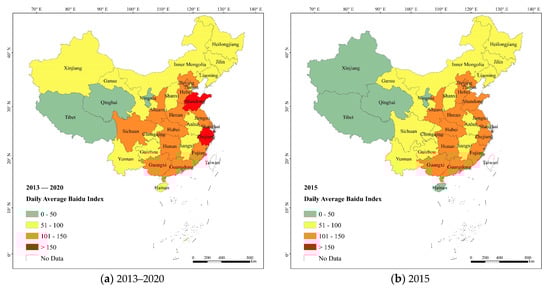 Figure 5. Spatial distribution of daily average Baidu index during 2013–2020.
