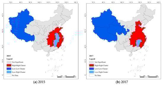 Figure 7. LISA agglomeration maps of public attention in China in 2015, 2017, and 2019.