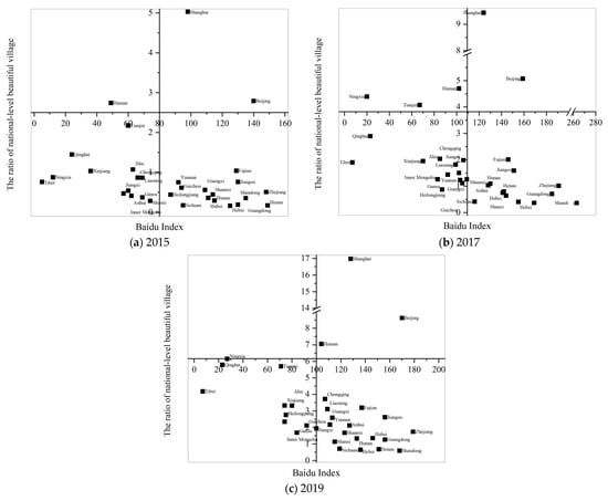 As mentioned above, the public attention towards the Beautiful Village Initiative has been rarely discussed; but, unsurprisingly, the phenomenon that the development or construction of the matter is uncoordinated with public attention has also been analyzed in related research fields. The public attention related to wastewater and the wastewater treatment has positive correlations to a certain extent [64]; however, the scarcity of water resources and the popularization of recycled water do not necessarily cause more public concern, and may even cause negative emotions, such as an aversion to using recycled water [65]. The scholars who study tourism have found that the construction quality and development level of scenic spots cannot completely determine the network attention, public preference, and demand [66,67]. In the field of public health, a variety of factors all affected the public concern of COVID-19 [47], and cases and death rates are significantly negatively associated with the public attention paid in the later stage of the epidemic [43]. This research has found similar results in different fields, which coincided with our findings, and more importantly, have also proved the significance of quantifying the impact of socioeconomic factors on public attention.
