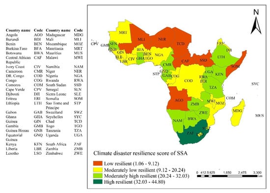 Therefore, this study used a popular method called the composite index method to analyze the spatial pattern of climate resilience in SSA. In this study, we used quantitative variables to construct resilience metrics that meaningfully capture the outcomes of climate change resilience that focus on the national-level study areas. Our objective is to use the matric-based approach to measure a country-level climate resilience that includes more extensive variables and 48 countries in SSA. Our metrics approach aims to capture a country’s social, economic, infrastructure, environmental, and institution interactions that work together towards enhancing climate resilience in SSA. The purpose of this study is to serve as a reference point for examining current and future climate change resilience and the need for adaptation measures.