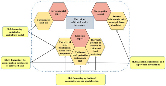 | SL3: Improving the compensation and mechanism of cultivated land | S1R21 S2R7 S2R34 S6R11 | S1R8→S1R1 S1R8→S6R11 S1R21→S2R2 S2R4→S1R21 S2R6→S2R12 S2R12→S2R4 S6R11→S1R8 S6R11→S6R13 | ↓11.86% | ↓7.7% |