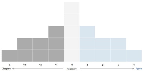According to the experts, Q sorting was performed for two assumptions (i.e., ground and underground incinerators). For each case, the statements with high agreement (concerns) were assigned a point of +4 and the statements with high disagreement (low impact) were assigned a point of −4 to create a Q sheet. The participants were encouraged to participate in Q sorting using Q software (Figure 2).